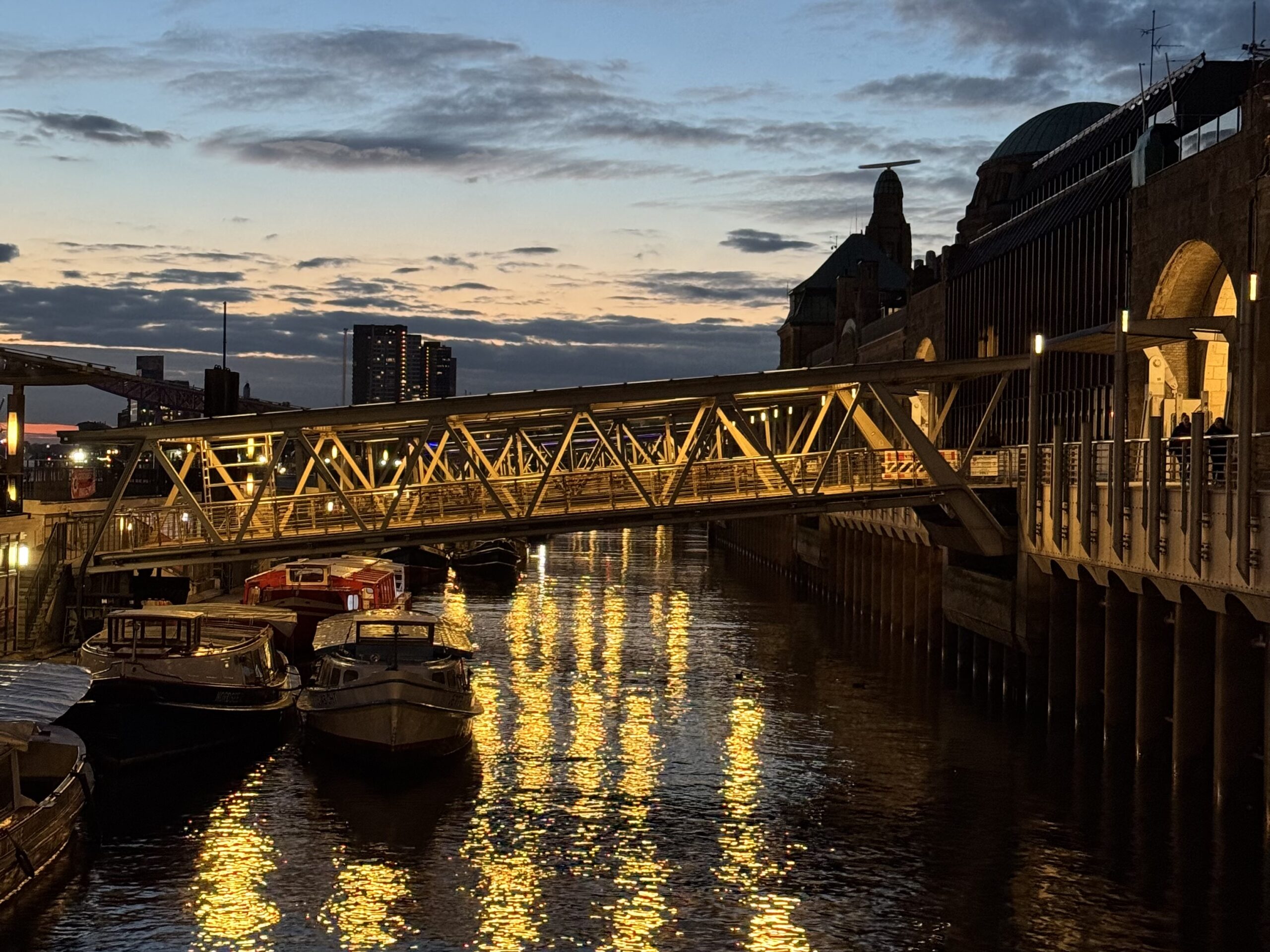 Nach der Vorstellung war der Hunger groß, und was würde besser zu einem Tag in Hamburg passen als ein original norddeutsches Fischbrötchen? An den Landungsbrücken stärkte sich die Gruppe mit Fisch oder anderen Leckereien, bevor es am Abend mit dem Zug wieder zurück nach Kassel ging.